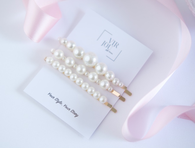 | Hair Accessories Type | 3 Piece Set Pearl & Round Pink Clips, 3 Piece Set White Pearl Bobby Pins |